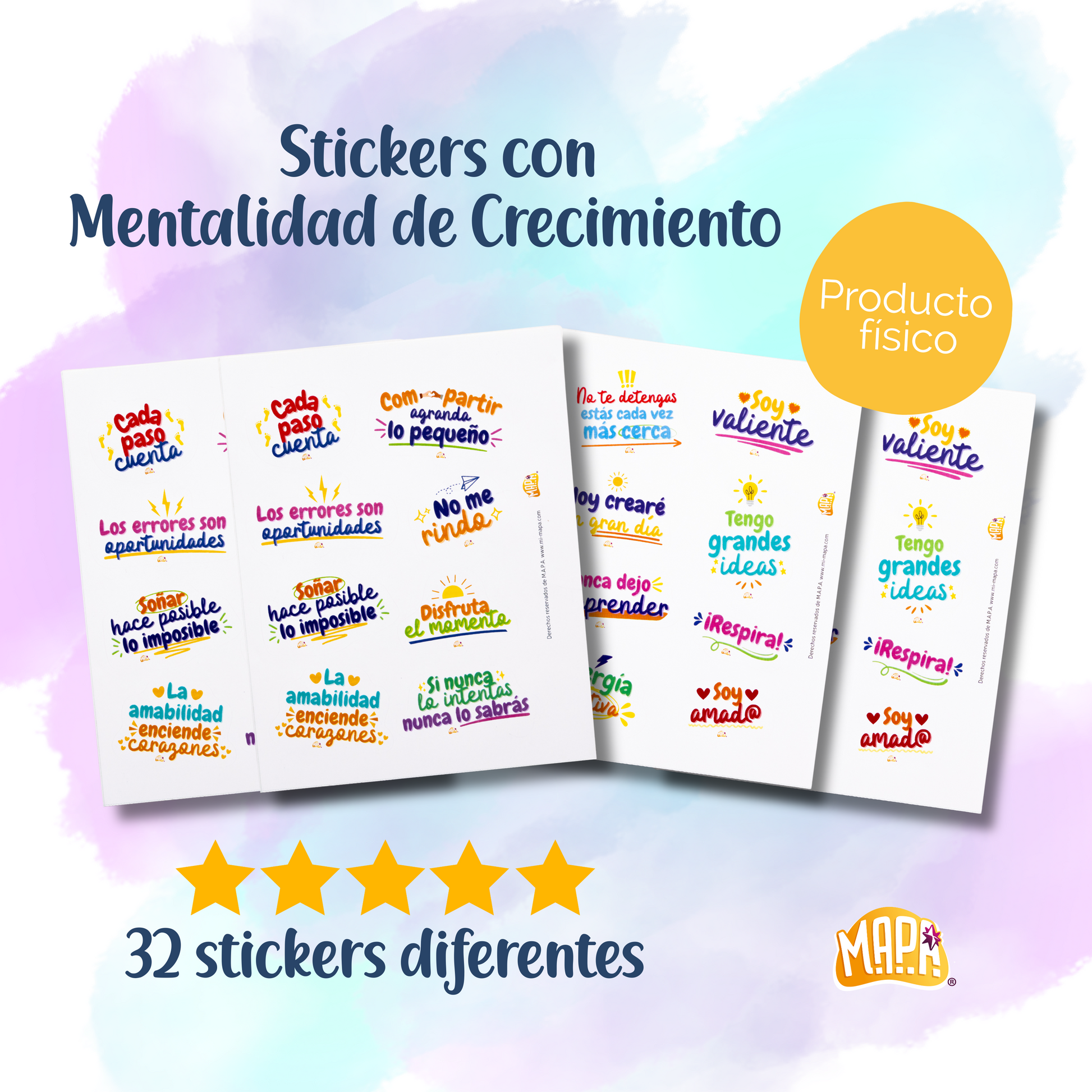 ✨ 32 Stickers con mentalidad de crecimiento para niños (2 juegos de 2 hojas) ✨